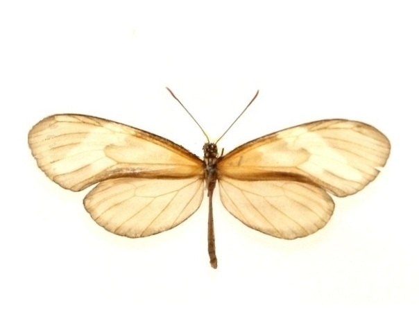 近似種の Ithomia agnosia は前翅の暗色帯が太く、透明部が狭い点で本種と容易に区別できます。 |