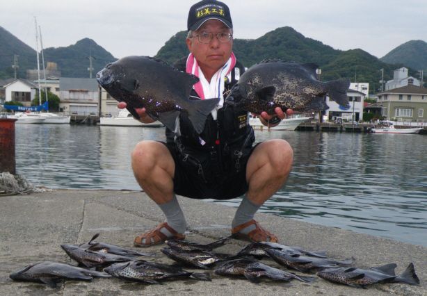 梅雨の中休みの中、念願の絶海の孤島イナンバに釣行することができ、左本場に乗ることができました。竿下で10m前後と浅く、潮も緩かったのですが、竿下に潮が当たり、朝6時半から納竿の1時まで、45cm前後のワサの入れ食い状態が続きました。納竿までには16枚が釣れ、60個持っていったウニが丁度、無くなる状況でした。大型は出なかったものの、『秀竜』の曲がりを堪能できた1日になりました。これで今年の釣果は、59枚になりました。