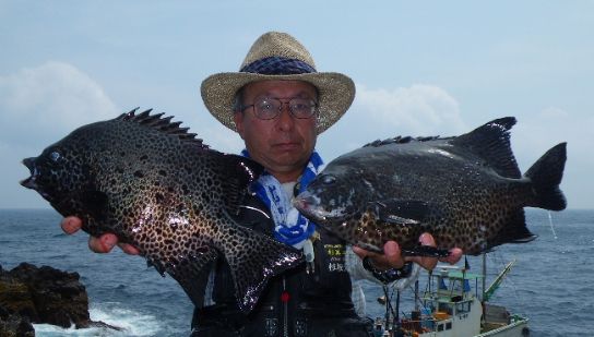 梅雨前線の影響で、悪天候が続く中、運よく、神津島に釣行することができ、金長鼻に乗ることができました。潮があまり動かない状況でしたが、足下の中層の棚で当たりが出るようになり、40cm〜47cmのワサ4枚と44cmの本イシを1枚釣ることができました。水温は20度をきってしましましたが上昇の傾向にあり、これからが楽しみです。これで、今年の釣果は、計35枚になりました。