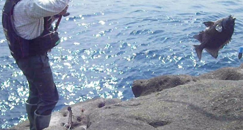 秋の3連休の初日,神津島に釣行し,オンバセ群島の名礁ジロハチに乗ることができました。しかし,潮は逆潮で,ほとんど動いていませんでした。正面の磯カド向きのポイントへ竿を出し,当たりを待ちました。しばらくして,当たりが出始め,竿を絞めこんだのは,48cmの本イシでした。その後は,40cm前後のワサを3枚釣ることができました。しかし,だんだんと海が荒れ始め,午後1時には磯替えをしないと危険な状態になりました。そして,船長に電話を入れ,近くで空いていたベンケイに替りました。そこでは,やはり40cmのワサを1枚,釣ることができ,納竿となりました。これで,今年の釣果は計89枚となりました。