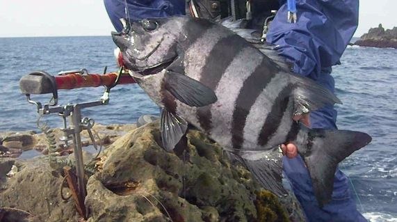 秋磯なのに高水温が続く神津島に釣行し,オンバセ群島の長ン根に乗ることができました。潮は,ほとんど動かない状況でしたが,小型のイシガキダイが群れている状況でした。しかし,9時ころ,ようやく竿が舞い込み,35cmのワサを釣ることができました。その後も同型のワサを2枚釣ることができました。午後1時を過ぎたころ,ようやく潮が当たるようになり,竿が舞い込みました。上がってきたのは,42cmの本イシでした。しかし,その後は再び小型のワサの猛攻となり,そのまま納竿となりました。これで,今年の釣果は計108枚となりました。