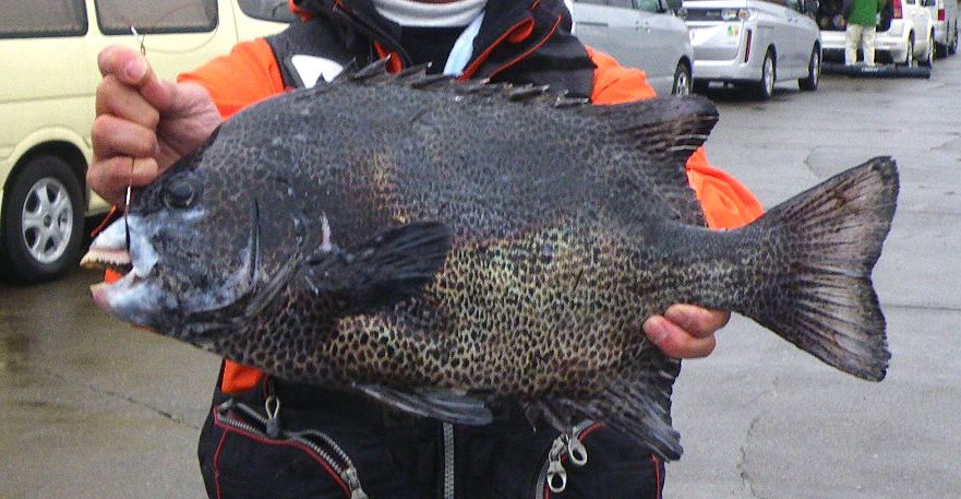 12月は,寒気の影響で荒れた日が多く,磯に行けない状況が続き,乗れても当たりが全くないという悲惨な月になってしまいました。水温も16度以下になり,このまま納竿となると思われた月末,凪になり,銭洲へ釣行することができました。かなりウネリが残っていましたが,超1級磯の大ダルマに乗ることができました。潮は,逆向きで,足元には,反転流が僅かに当たっている状態でした。仕掛けを入れるとすぐに当たりがあり,35cmのワサを釣ることができました。その後は,仕掛けを入れる度に当たりがある状態で,サイズは40cm前後が多いものの,7枚,釣ることができました。そして,納竿が近づいたころ,潮が変わり,右からの早い潮が入ってきました。すると,竿が一気に舞い込みました。途中,根に張り付かれましたが,出すことができ,用意してあったタモに無事に入れることができました。ジャスト60cmのクチジロでした。最高の納竿となりました。これで,今年の釣果は,計110枚となりました。