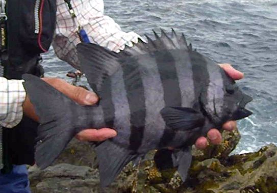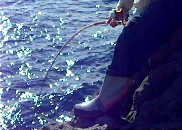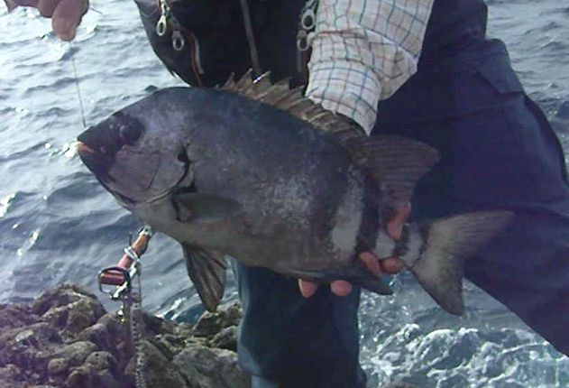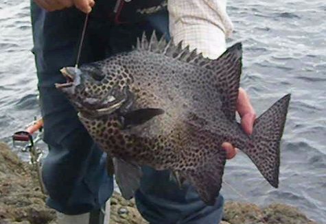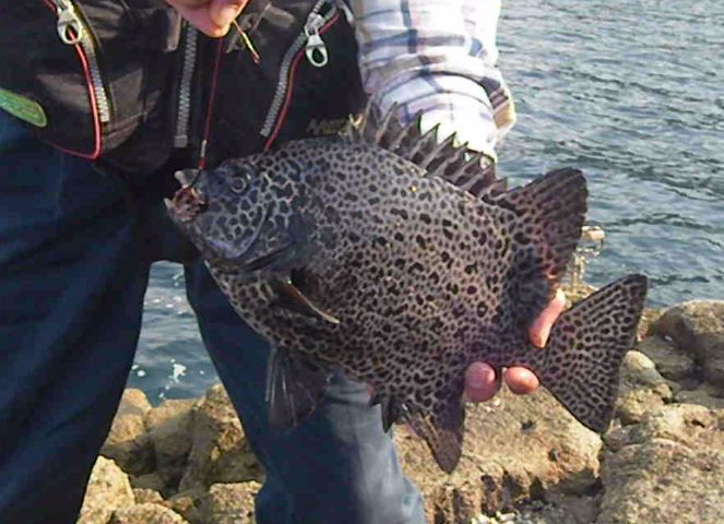 露空の下,パラパラと雨が降りしきる中,神津島に釣行し,超1級磯の岡の作根の四畳半に乗ることができました。潮は南から激流が差し,良い条件でした。そこで,仕掛けを入れると,あっという間に餌のウニが取られてしまう状況でした。小型のイシガキダイがうようよいて,大型の針には乗ってこない状態が続きました。しかし,いつ大型か来るかわからないので,辛抱するしかありませんでした。この状態が2時間ほど続き,ようやく竿が舞い込みました。上がってきたのは,32cmのワサでした。その後も同じ状態で,35cmのワサが釣れましたが,潮が上げだすと磯に波が被るようになり,10時半には,磯替えとなりました。タタキ根に移ったのですが,全く当たりはありませんでした。これで,今年の釣果は計35枚となりました。