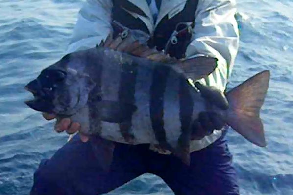 低気圧が通過し,まだうねりの残っている神津島に釣行し,タダナエ群島のエボシの1番に乗ることができました。潮は,あまり動いておらず,棚は上から狙っていきました。コマセのウニ柄を入れ,いろいろな棚を狙ってみましたが,底に近い棚でしか当たりが出ない状況でした。1時間後,ようやく竿が舞い込み,1.2kgのワサを釣り,その後,2.0kg,1.5kg。1.3kgのワサを釣ることができました。そして,昼近くになった頃,大きな当たりが出て,しっかりと竿が舞い込みました。上がってきたのは,56cm,3.4kgの本イシでした。さらに大きくなってくれることを願ってリリースしました。これで,今年の釣果の計は,14枚になりました。