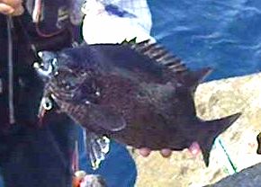 水温が上昇し始め,大型のクチジロが姿を見せる時期になりました。そこで,神津島に釣行し,タダ島に乗ることができました。潮は,オンバセ方向から当たっており,よい潮でした。餌のヤドカリを付けて1頭目,すぐに竿が舞い込みました。じっくり待ってから合わせると,上がってきたのは,リリースサイズの35cmのワサでした。その後は,潮が右からさしたり,左からさしたりと落ち着かず,同型のワサを1枚,追加しただけでした。さらに昼近くには止まってしまいました。午後1時ころ,ようやく潮が右から動き出したとき,竿が舞い込みました。上がってきたのは,イラでした。その後は当たりがなく,納竿となりました。今年は,計4枚の釣果となりました。