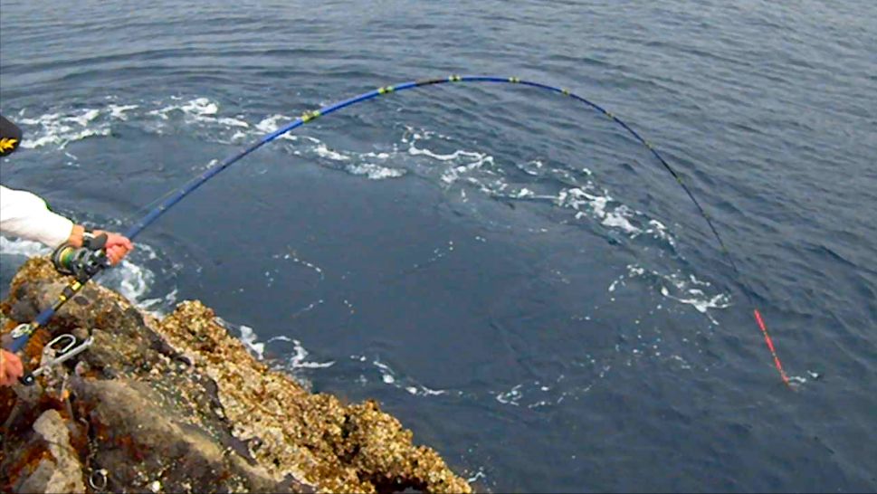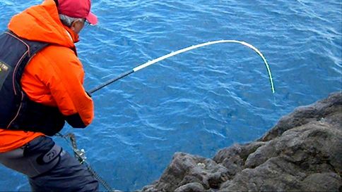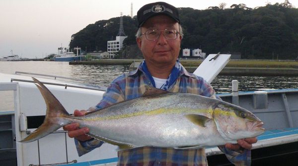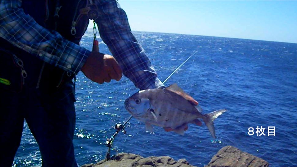 大阪在住の超竜の持ち主の村山さんと神津島に釣行し,タタキ根に乗ることができました。潮は,竿下にちょうど良い速さで,第1投目から当たりが出る状況でした。しかし,小型が多く,なかなか舞い込まない状態が続きました。そして,先調子で食い込みの良い超竜がようやく舞い込みました。上がってきたのは,37cmのワサでした。その後は,42cmまでのワサを4枚釣りました。昼近くに潮が逆になり,裏側へ場所を移動し,2枚を釣ることができました。私は,2枚しか釣れませんでしたが,楽しい釣行となりました。村山さんは,8日も神津島で竿をだし,4枚,釣ることができました。これで,私の今年の釣果は計30枚となりました。 |