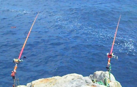 ● 伊豆・神津島 オンバセ群島 平段 釣行 2013. 9. 18 夏磯真っ盛りの神津島で、青物が回遊を始めたので、今回は、青物狙いで釣行し、オンバセ群島の平段に乗ることができました。朝の内は、餌のムロアジが回遊し、それを餌にカンパチを狙っていたのですが、10時頃からは、ムロアジが全くつれなくなり、仕方なく、イワシのブツを餌にして釣っていました。すると、35cm前後のカイワリが8枚、釣れました。なかなか青物釣りは、難しいですね。 |