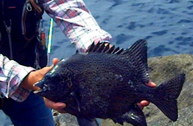 高水温で,しかも猛暑が予想されましたが,南伊豆の入間に釣行し,赤島の本島に乗ることができました。潮は,下り潮が差しており,数釣りが期待できました。しかし,間もなく潮が止まり,餌取りの当たりもほとんど出なくなってしまいました。そんな中,食い込みのよい穂先が当たりをとらえ,本イシの♂と♀を釣ることができました。その後も潮が動かず,納竿となりました。 |
