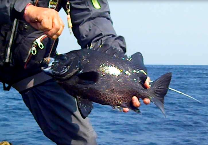12日は,『秘竿 輝竜 600』のフィールドテストで,神津島のタダナエ群島の平段で泳がせ釣りでカンパチを狙い,3kg前後を2枚,釣ることができました。