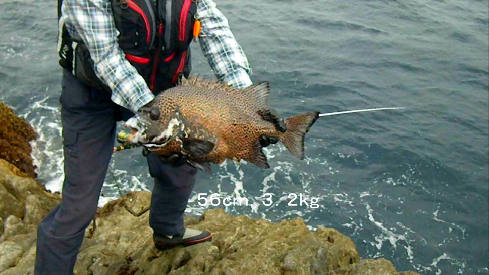 2日は,『 美竜 』のフィールドテストで,神津島へ釣行し,金長鼻に乗ることができました。潮は,左から右に,かなり速く,深場を狙うことはできませんでした。しかし,15mのタナで当たりがよく出て,1.5kg前後のイシガキダイを4枚,釣ることができました。そして,潮が緩みだしたとき,大きな当たりがあり,竿が舞い込みました。上がってきたのは,56cm,3.2kgの良型でした。その後は,潮がとても速くなり,根掛かりの連続となってしまいました。