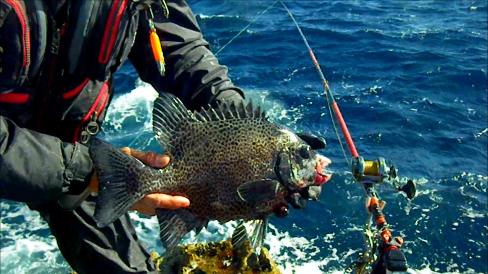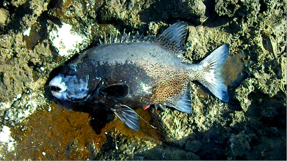 水温が16度しかない状況でしたが,神津島に釣行し,湯柱に乗ることができました。強い風と冷たい雨を背中から受ける厳しい釣りでしたが,イシガキダイを2枚,釣ることができました。大型はいるのですが,なかなか口を使ってくれない状況が続いています。これで,今年の釣果は計3枚となりました。 |