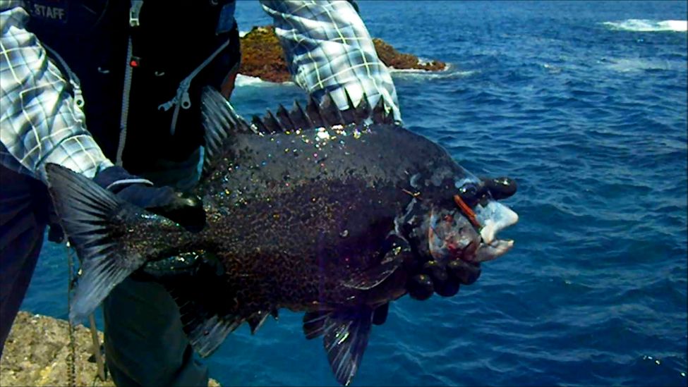 ● 伊豆諸島 神津島 金長鼻 2017.10.9 秋磯の真っ最中,神津島へ釣行し,金長鼻の磯に乗りました。先端は,根係が多く,苦労しましたが,40cm前後のワサを8枚,釣ることができました。 今年は,黒潮の大蛇行の影響で,青物が回っておらず,全く釣れていません。 青物は,来年までお預けになりそうです。 これで,今年の釣果は,石物17枚,石物は通算で,計1,017枚となりました。 |