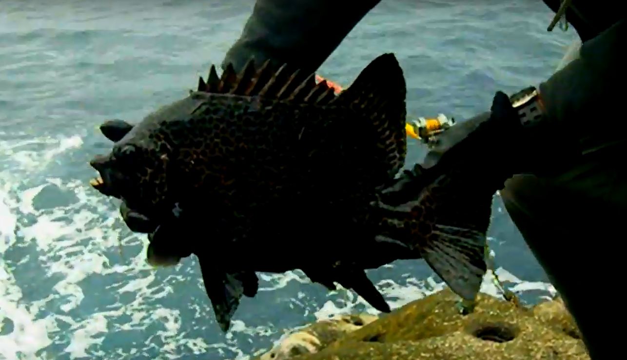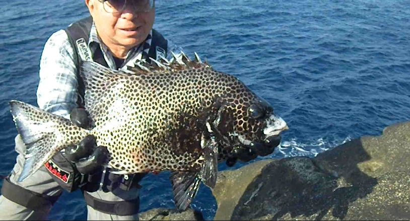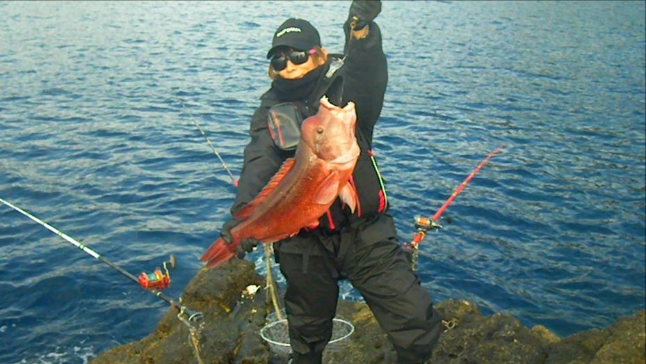 杉美工芸の竿,美竜,飛竜,輝竜のフィールドテストで,南伊豆の入間に仲間と釣行し,赤島のハナレに乗ることができました。水温が低下し,食い渋る中,石垣鯛3枚,カンダイ5.5sを釣ることができました。